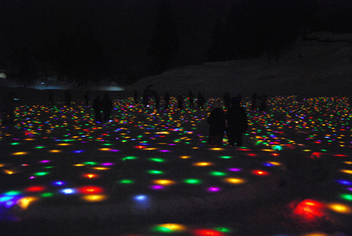 子どもたちに続いて光の回廊を歩いて、かまくらを抜けて花畑にお客さんたちが入ってきました。